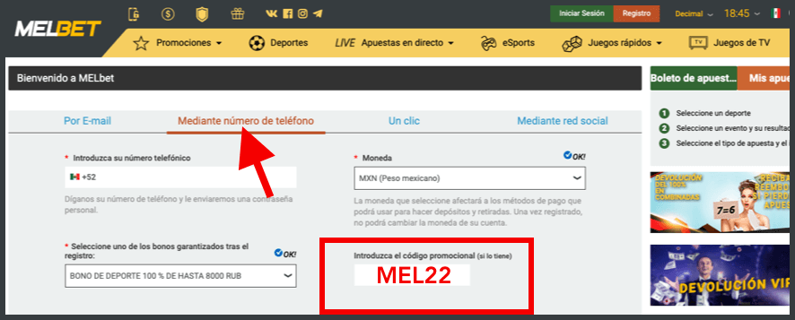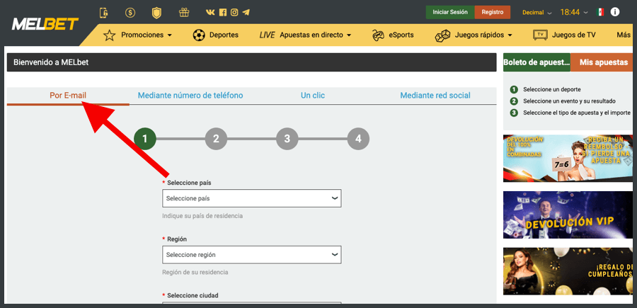 Registro en Melbet: instrucciones