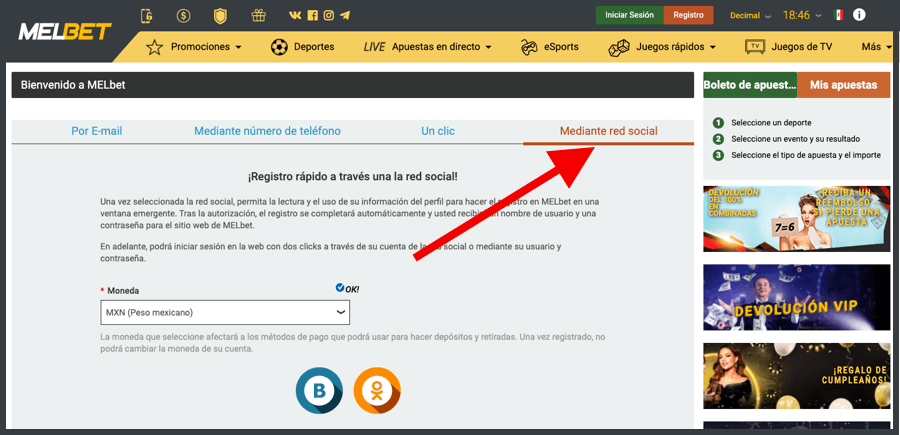 Hay cuatro formas de registrarse en Melbet que son las siguientes. Elige la que más te convenga.