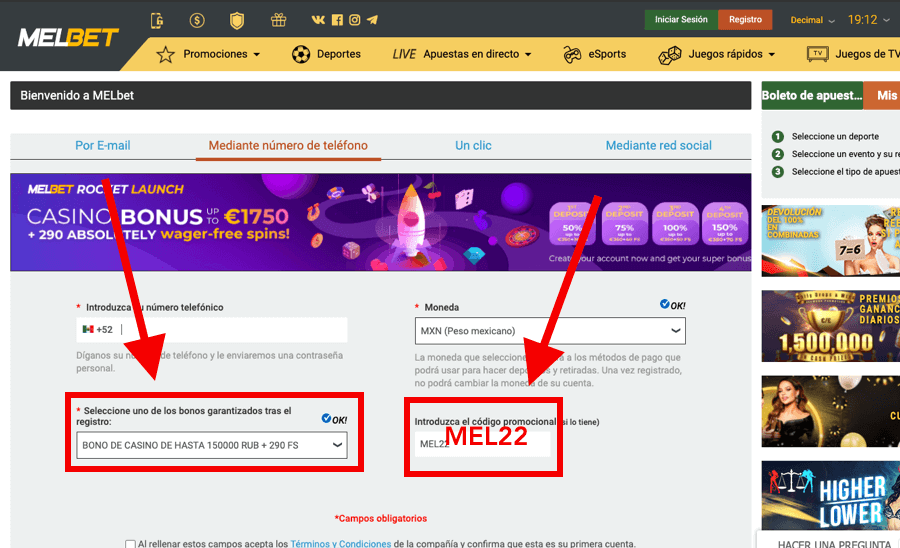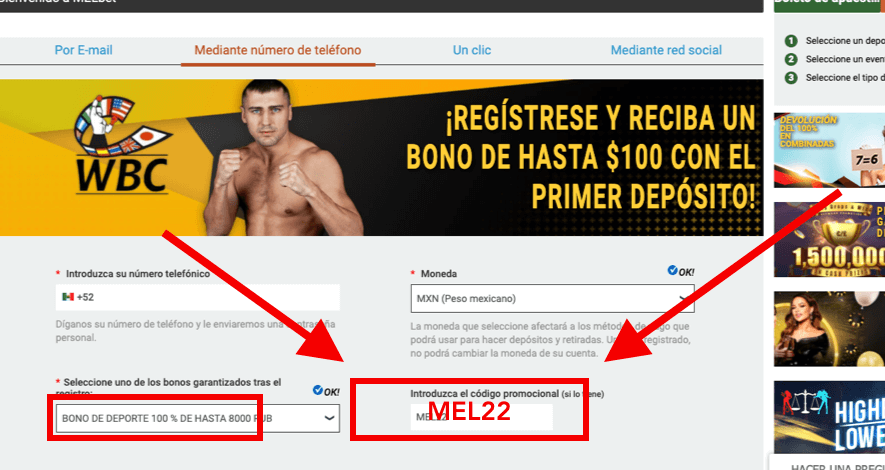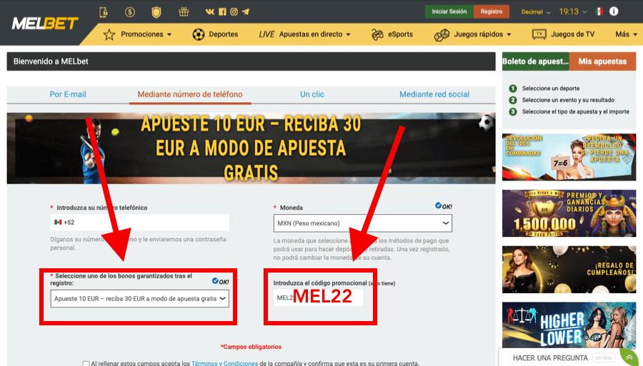 – Hay que introducir el código promocional MEL22 al registrarse.